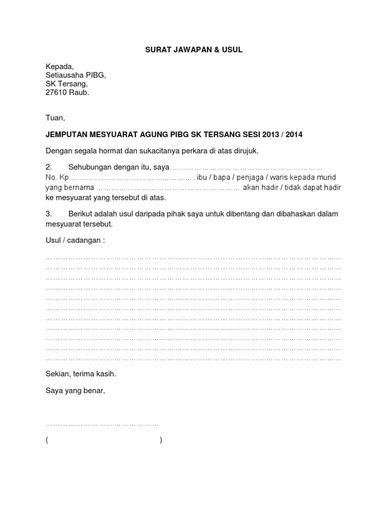 contoh surat jawapan